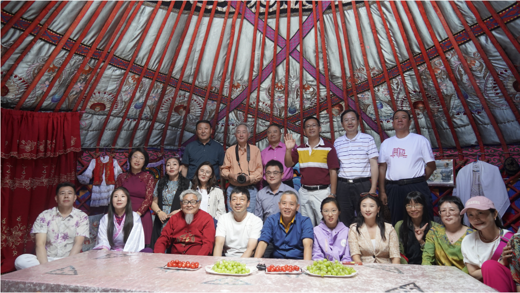 ↑中国诗歌春晚团队一行做客塔拉特民俗村,留影于毡房内。