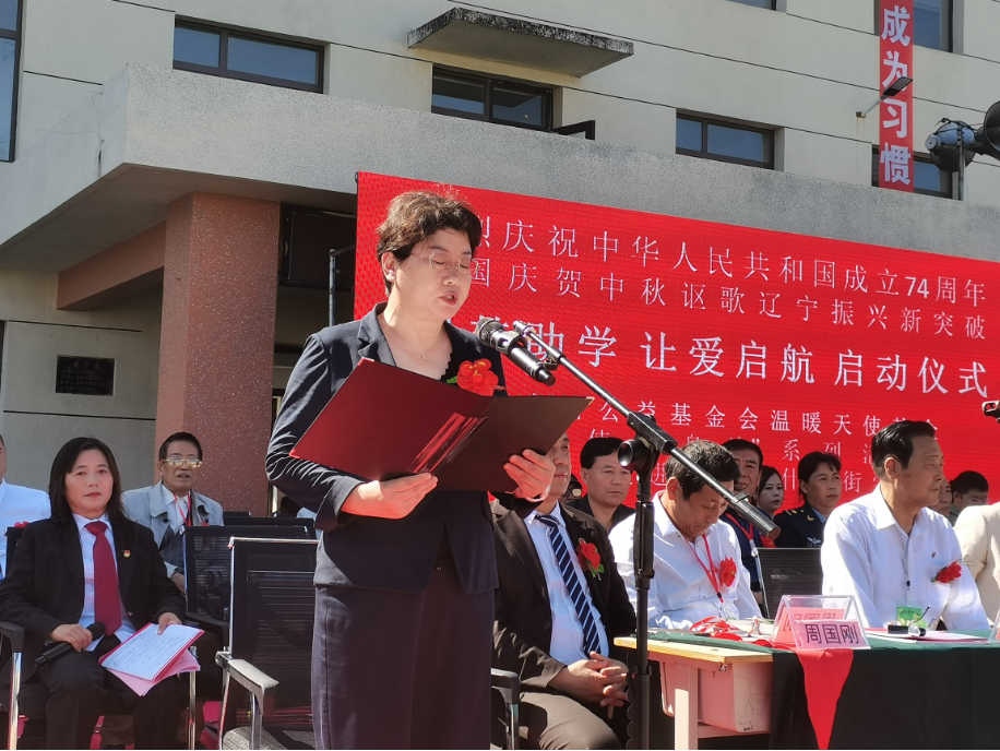 本次活动的主题是:热烈庆祝中华人民共和国成立74周年,庆国庆,迎中秋,讴歌辽宁振兴新突破,暨辽宁省公益基金会温暖天使基金,“天使在身”系列活动,2023走进盖州市什字街学校,圆梦助学、让爱启航。