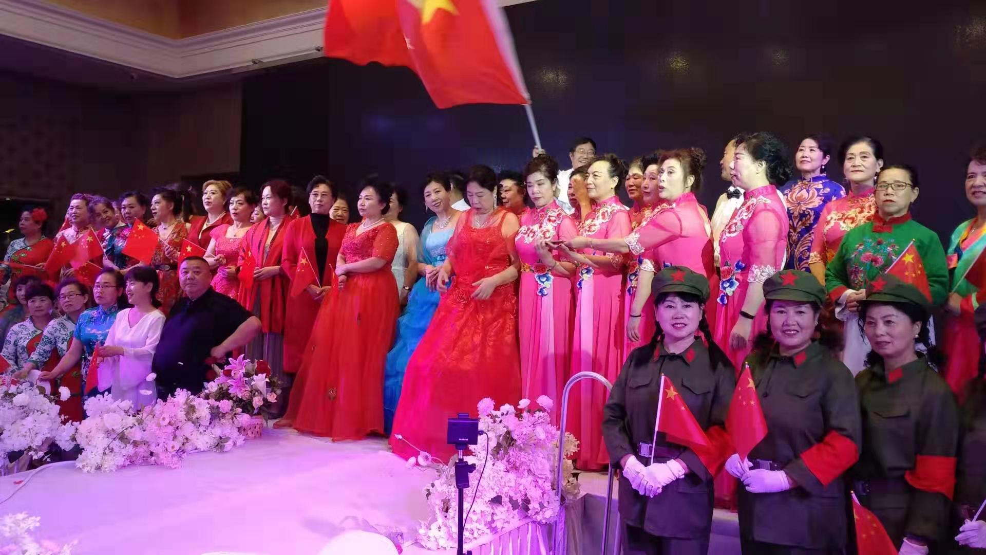 在全场的一片欢呼叫好声中,大家举杯,共祝伟大祖国七十华诞,祝福祖国更加繁荣昌盛。