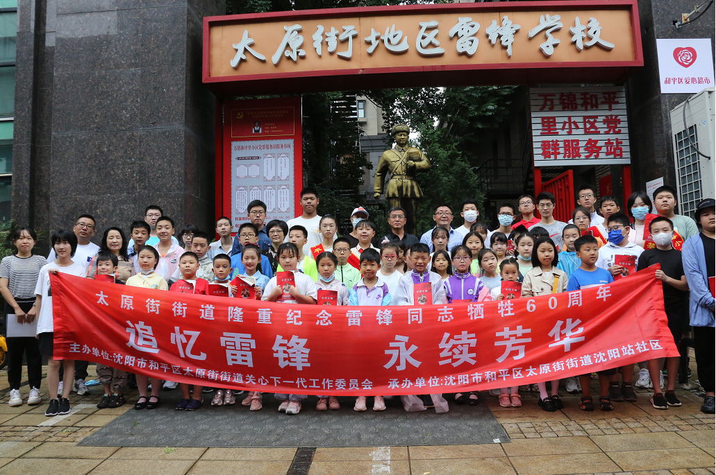 2022年8月15日是雷锋因公牺牲60周年纪念日,沈阳市和平区太原街街道关心下一代工作委员会在沈阳站社区雷锋学校门前以“追忆雷锋,永续芳华”为主题举行隆重的纪念活动,弘扬新时代雷锋精神,传承雷锋文化,以实际行动迎接二十大的召开。