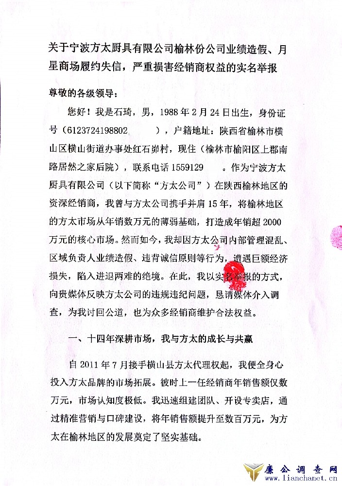 石琦实名举报——方太榆林乱象